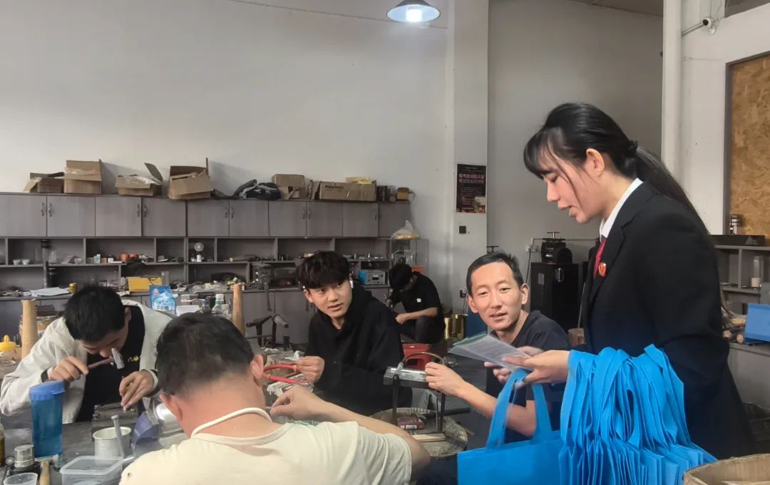清晨,干警们走进银器作坊,在叮叮当当的敲打声中开展普法宣传活动,将精心编制的知识产权宣传资料送到匠人手中,结合银器生产、销售实际,用通俗易懂的语言讲解知识产权保护方面相关法律知识。面对匠人们提出的“传统工艺如何申请专利”“网络销售侵权风险防范”等问题,干警耐心解答,指导他们运用法律手段维护自身合法权益。活动现场共发放宣传资料200余份,解答法律咨询若干个,切实将法律知识转化为保护创新的实用技能。