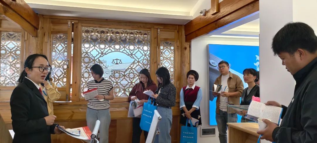 授课结束后,商户代表来到我院的银器产业纠纷多元化解工作室参观。干警们主动发放银器产业非遗知识产权保护典型案例及其他宣传资料。芶克祥副院长详细介绍了工作室在高效化解银器产业矛盾、维护市场秩序方面的积极作用,对大家手中的案例进行深度剖析。商户代表纷纷表示,通过实地参观和典型案例学习,深刻认识到知识产权保护的重要性,也掌握了更多纠纷预防与解决方法。