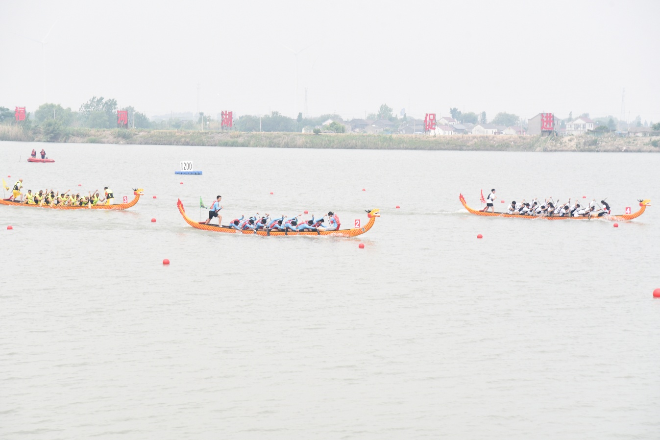 随着发令声响起,陈堡草荡泰州市水上运动训练基地霎时化为一片沸腾海洋。湖面上,一艘艘龙舟如离弦之箭冲出起点,鼓手擂响战鼓,节奏紧凑而富有力量;划手们动作整齐划一、奋力挥桨,龙舟在水面上你追我赶、劈波斩浪。岸边上,随着各组龙舟竞渡,观众的助威声、呐喊声、欢呼声此起彼伏、激昂交错,气氛高潮迭起。