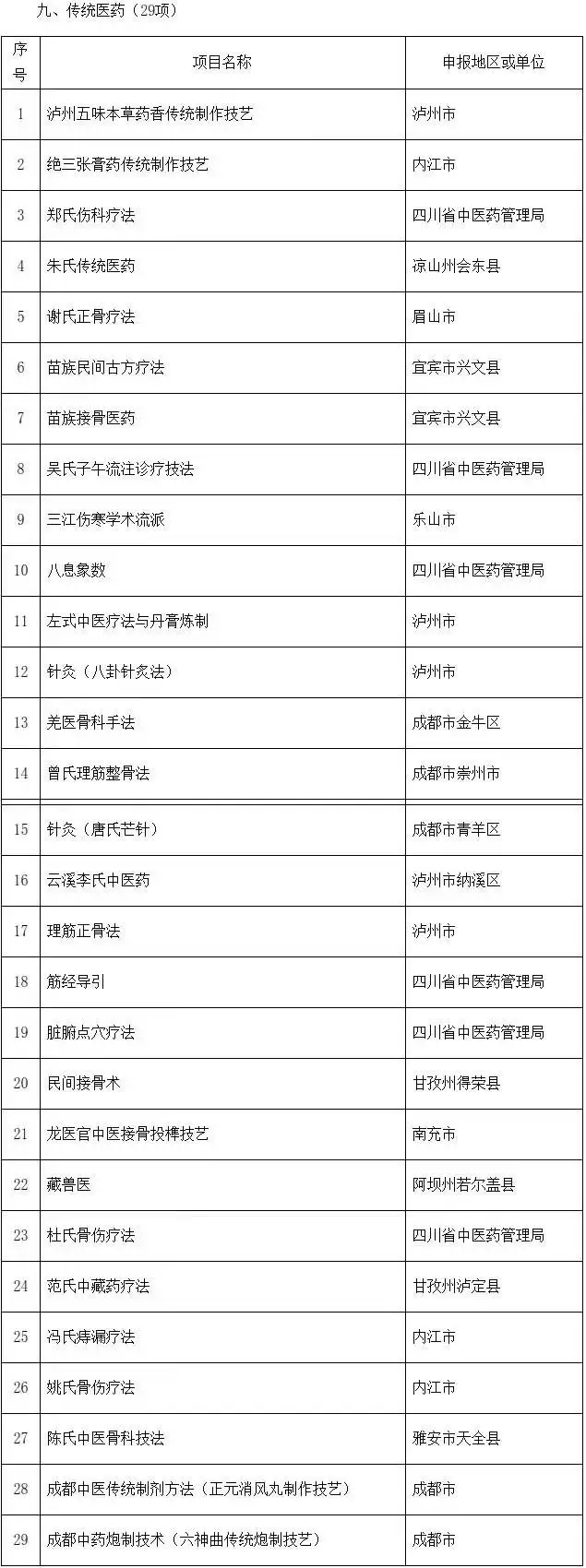 11月3日,四川省文化和旅游厅公示了第六批省级非物质文化遗产代表性项目名录推荐项目名单,共有334项(新列入207项,扩展127项)。其中新列入传统医药项目29项,扩展传统医药项目5项。具体如下: